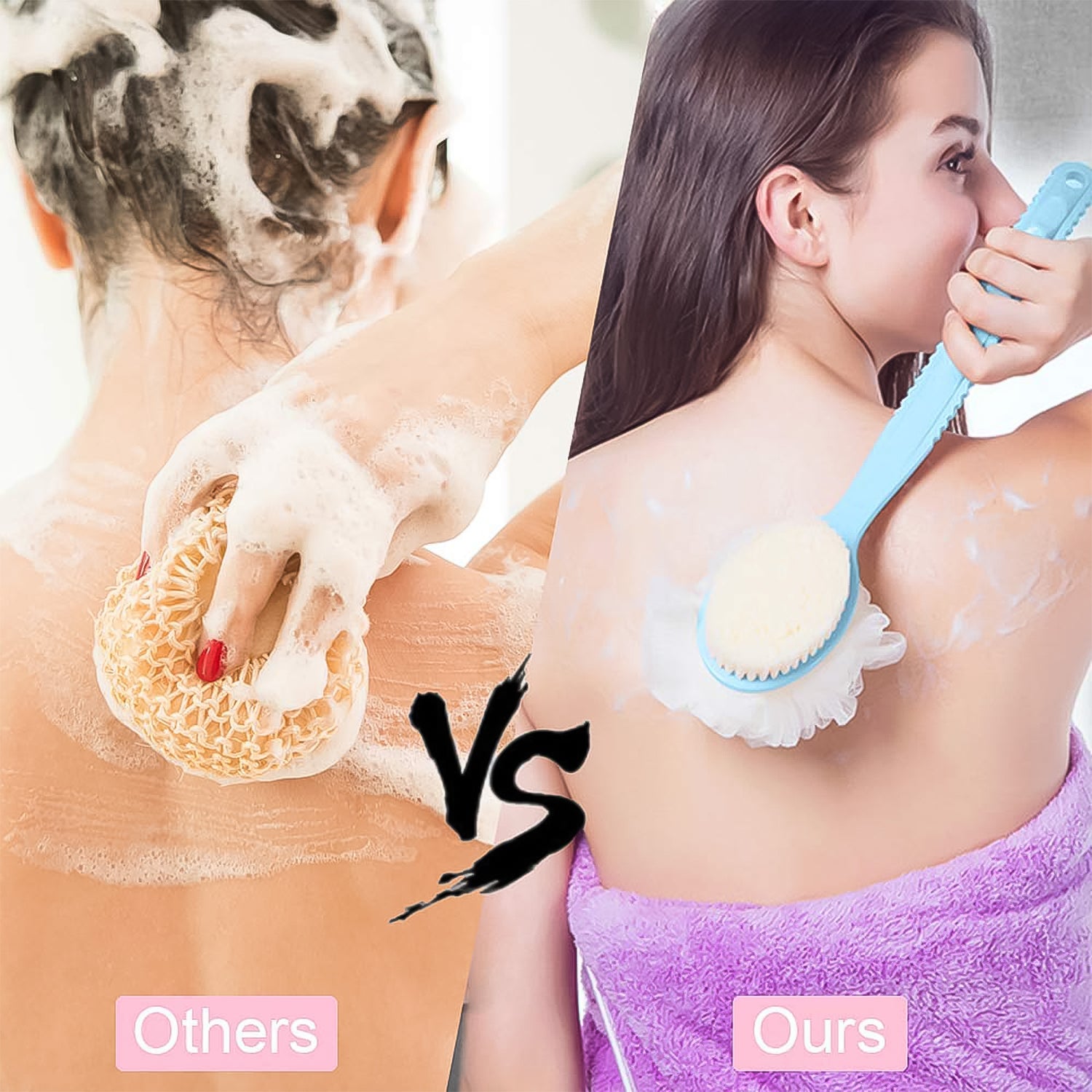 - Long Handle Effectively cleans your body as it’s long handle makes it reach even your mid-back, hamstrings, & other not-so-easy to reach body parts.
